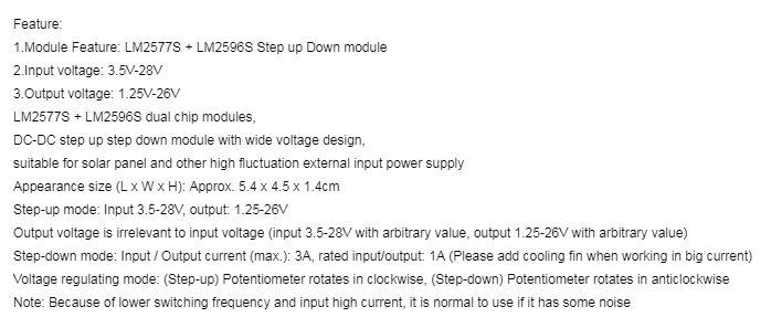 4.Automatic Adjustable Boost or Buck module has start voltage and limit working voltage, Please donot exceed them , or it will be damaged easily.