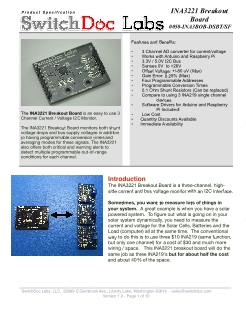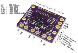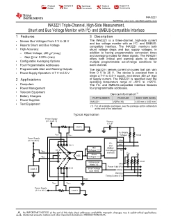 The INA3221 is a three-channel, high-side current and bus voltage monitor with an I2C- and SMBUS-compatible interface. The INA3221 monitors both shunt voltage drops and bus supply voltages, in addition to having programmable conversion times and averaging modes for these signals. The INA3221 offers both critical and warning alerts to detect multiple programmable out-of-range conditions for each channel.
