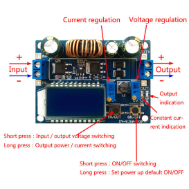 1.3. Can be step-up and step-down, the output voltage 0.5-30V arbitrary regulation, limiting the current 0-4A arbitrary regulation;