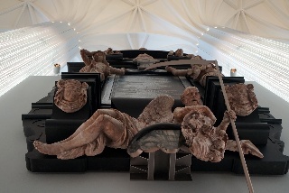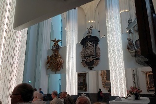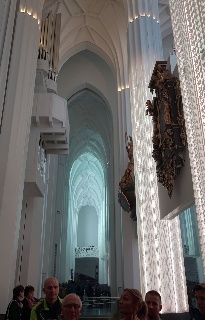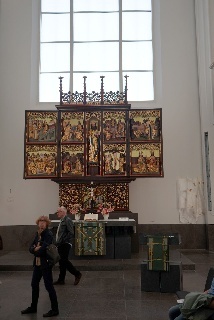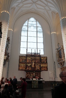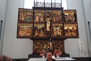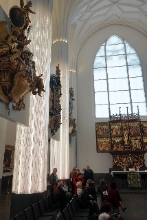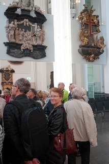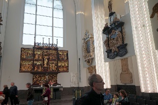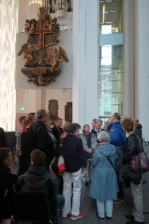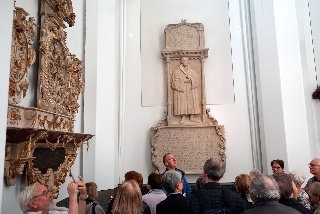 Danach dann zum "Praxisteil": ein Rundgang durch das Paulinum mit Erläuterung zu den 27 Epitaphien, den beiden Orgeln und der Bedeutung der über 18m hohen Glas-Schiebetür, die, nach beiden Seiten geöfffnet, die Aula der Uni mit dem Altarraum (dessen Inhalte klimatisch aufwendig gelagert werden müssen - Denkmalschutz) verbindet. Normalerweise ist der zu, so auch heute.