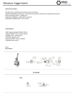 • 9.8 mm hoch, Betätigungselement • 5.5 mm hoch, flache Buchse • Klemmendichtung: Epoxidharz • Isolationswiederstand: 1000 Mohm • Kontaktwiderstand: 50 mOhm | Technische Daten- Typ: Sub-Miniatur-Kippschalter